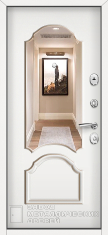 Белая дверь с зеркалом и терморазрывом для загородного дома №22 — решение для входа, где зима любит проверять на прочность: коттедж, частный дом, да и тёплый офис ей по плечу. Белые МДФ-панели с обеих сторон выглядят аккуратно и «чисто» даже в современном интерьере, а зеркало добавляет света в прихожей и экономит место на стене. Терморазрыв разрывает мостик холода между улицей и домом: внутренняя часть не промерзает, меньше конденсата и наледи, а тепло остаётся внутри. Каркас и полотно из профтрубы 50×25, лист холоднокатаной стали 2 мм, два ребра жёсткости 40×25 и противосъёмные блокираторы 10 мм — для тех, кто любит спокойный сон. Два контура уплотнения E+D дают плотный притвор и меньше шума. Размер изготовим любой, базовая цена указана для 2000×800 мм; утепление можно добавить опцией. Белая дверь с зеркалом и терморазрывом для загородного дома №22 по выгодной цене с доставкой и установкой в от производителя.